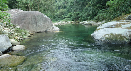 Piscina natural no Rio Mogi, com águas cristalinas para nadar e banhar-se.